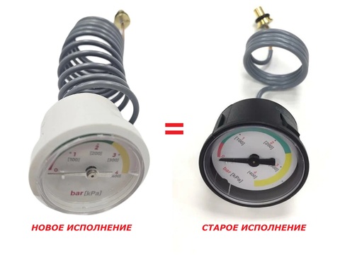 ВНИМАНИЕ! Производитель имеет право менять конструкцию манометра без согласования с заказчиком или владельцем оборудования, менять его внешний вид, конфигурацию или упаковку, что не влияет на его функциональные способности и на работу газового оборудования. В настоящий момент завод-изготовитель официально поставляет данный манометр в новом исполнении в белом корпусе. Манометр полностью взаимозаменяем с манометром старого образца.