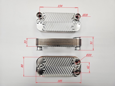 Теплообменник ГВС (12 пластин) (4 фланца) подходит для настенных газовых котлов Hydrosta моделей: