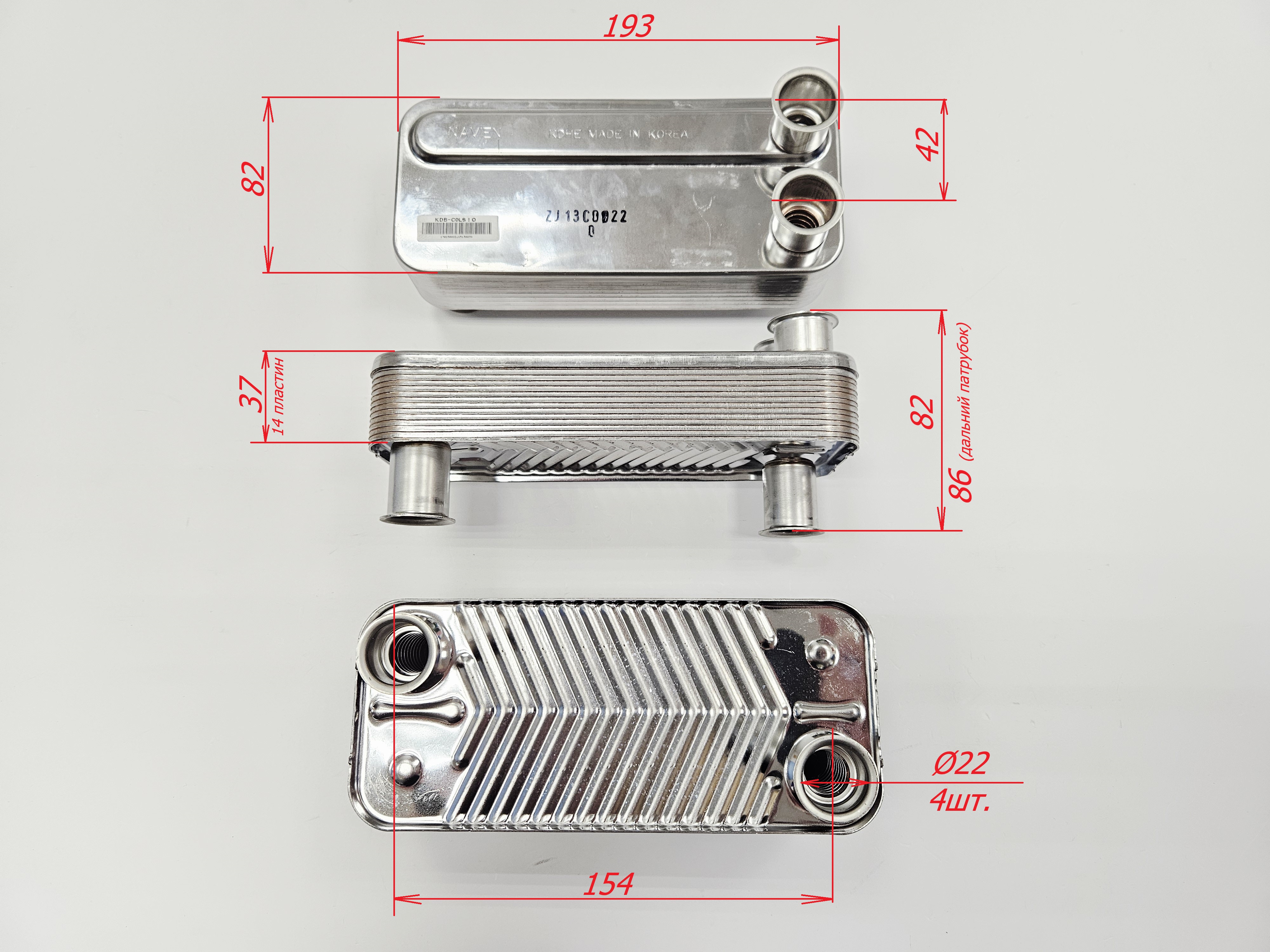 Вторичный теплообменник ГВС (20 пластин) подходит для настенных газовых котлов Navien моделей:
