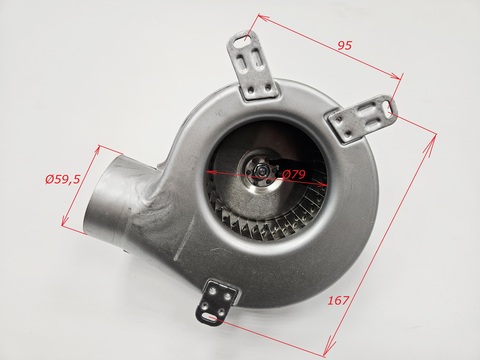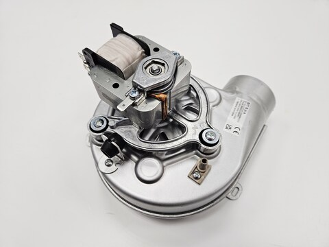 Вентилятор – устройство, расположенное в газовом котле, для удаления дымовых газов из камеры сгорания на улицу (дымосос) или подачи воздуха в камеру сгорания котла с принудительным дымоудалением (воздуходув, турбина). Атмосферные котлы с естественным дымоудалением не содержат в своей конструкции вентилятора, в турбированных котлах с принудительным дымоудалением установлены вентиляторы центробежного типа. Вентилятор состоит из электродвигателя, вращающегося ротора с загнутыми лопатками и спирального кожуха («улитки»). Вентилятор, установленный в турбированном котле, обеспечивает стабильное дымоудаление независимо от наличия вертикального дымохода с естественной тягой, что позволяет использовать разнообразные дымоходы и позволяет установить котёл как в частном доме с коаксиальной системой дымоудаления, так и в квартире – с раздельной системой дымоудаления.