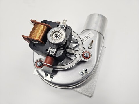 Вентилятор – устройство, расположенное в газовом котле, для удаления дымовых газов из камеры сгорания на улицу (дымосос) или подачи воздуха в камеру сгорания котла с принудительным дымоудалением (воздуходув, турбина). Атмосферные котлы с естественным дымоудалением не содержат в своей конструкции вентилятора, в турбированных котлах с принудительным дымоудалением установлены вентиляторы центробежного типа. Вентилятор состоит из электродвигателя, вращающегося ротора с загнутыми лопатками и спирального кожуха («улитки»). Вентилятор, установленный в турбированном котле, обеспечивает стабильное дымоудаление независимо от наличия вертикального дымохода с естественной тягой, что позволяет использовать разнообразные дымоходы и позволяет установить котёл как в частном доме с коаксиальной системой дымоудаления, так и в квартире – с раздельной системой дымоудаления.